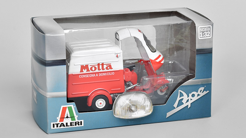 Úvod » Nákladní auta » Piaggio Ape B150 Furgone Pubblicitario Motta 1954 1:32 - Italeri